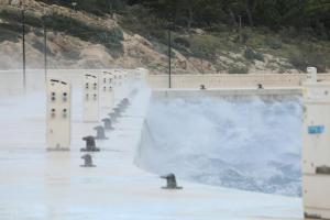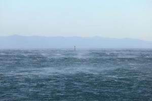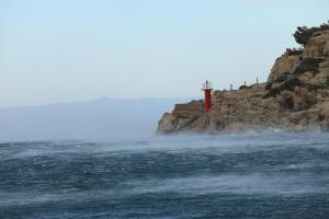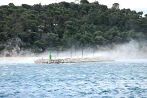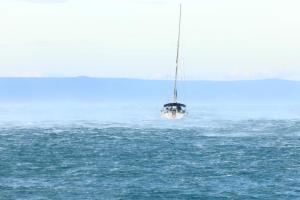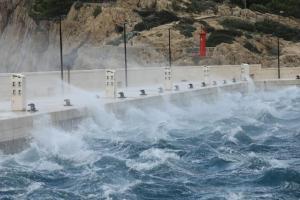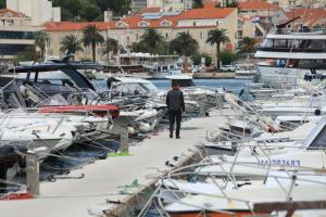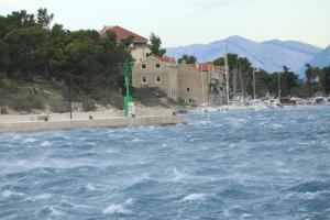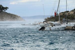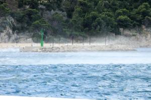 Makarska, 03.10.2025 - Jaka bura na podrucju Makarske stvara probleme u pomorskom prometu