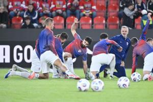 Prag, 09.10.2025 - Nogomet: Zagrijavanje prije kvalifikacijske utakmice za SP, Ceska - Hrvatska