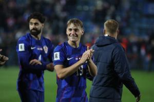 Varazdin, 12.10.2025 - Nogomet: Slavlje Hrvatske nakon pobjede nad Gibraltarom rezultatom 3-0