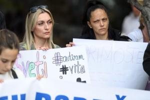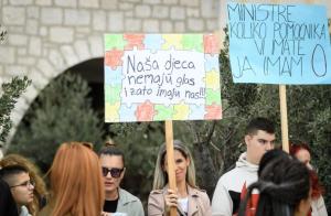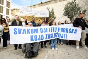 Sibenik, 18.10.2025 - Prosvjed roditelja djece s teskocama u razvoju