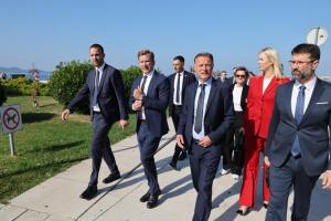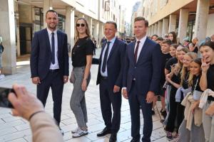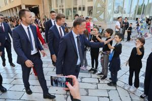 Zadar, 18.10.2025 - Predsjednik sabora Gordan Jandrokovic u pratnji gradonacelnika Erlica i...