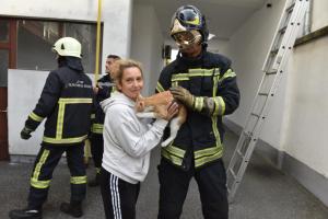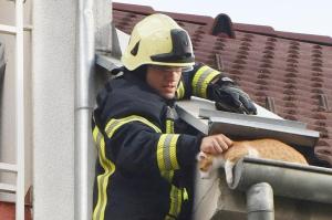Slavonski Brod, 23.10.2025 - Vatrogasna intervencija spasavanja macke s krova