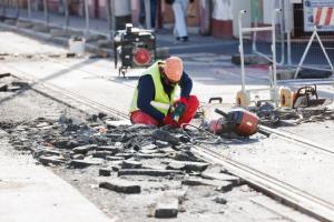 Osijek, 24.10.2025 - Tramvajska pruga u Zupanijskoj ulici popravlja se trecu godinu zaredom