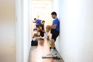 Vinkovci, 27.10.2025 - Zagrijavanje igraca Vukovara u hodniku stadiona prije pocetka utakmice...