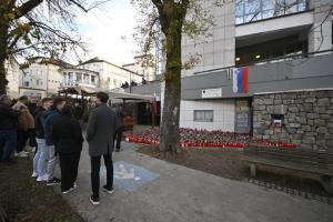 Novo Mesto, 28.10.2025 - Svijece ispred kluba Lokalpatriot gdje je napadnut i ubijen muskarac