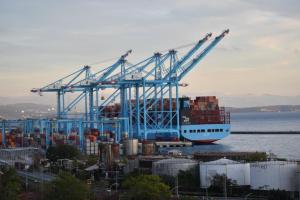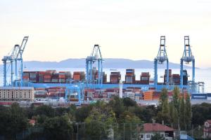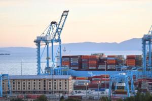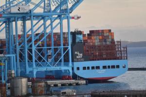 Rijeka, 28.10.2025 - Kontejnerski brod Alva Maersk duzine 350m pristao je na terminalu Rijeka...