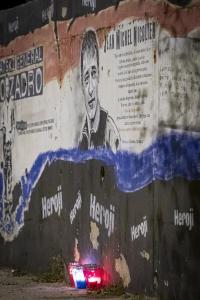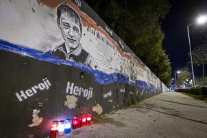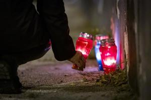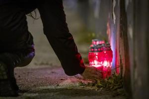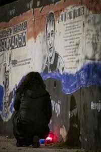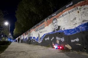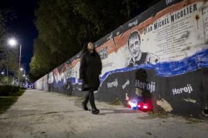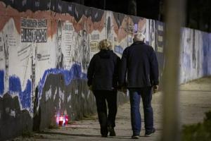 Split, 29.10.2025 - Gradjani pale svijece pokraj murala Jean-Michela Nicoliera u Vukovarskoj...