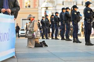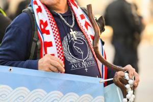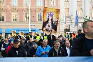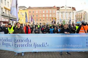 Zagreb, 01.11.2025 - Molitelji i ove subote mole krunicu na Trgu bana Jelacica