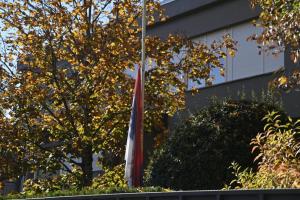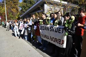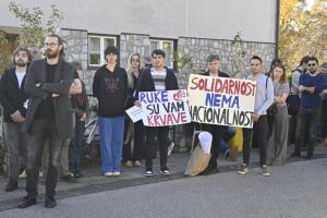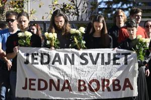 Zagreb, 01.11.2025 - Prosvjed ispred Veleposlanstva Republike Srbije na godisnjicu pada nadstresnice...