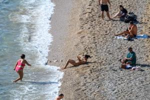 Dubrovnik, 02.11.2025 - Hrabri kupaci na plazi Banje uzivaju u suncanom danu