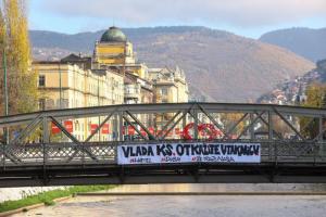 Sarajevo, 04.11.2025 - Postavljeni plakati koji pozivaju na otkazivanje kosarkaske utakmice...