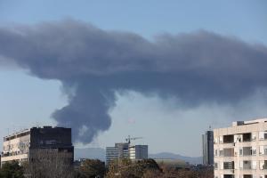 Zagreb, 04.11.2025 - Gusti dim pozara u Svetoj Nedelji vidljiv je u Zagrebu