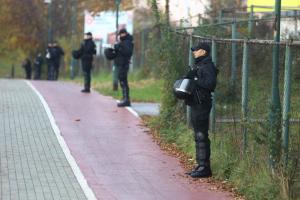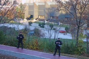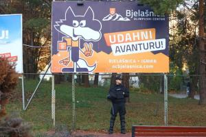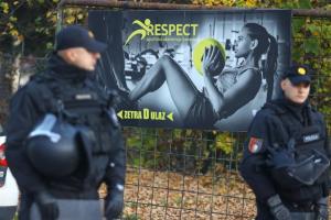 Sarajevo, 06.11.2025 - Policija osigurava prostor oko dvorane Zetra uoci kosarkaske utakmice...