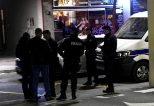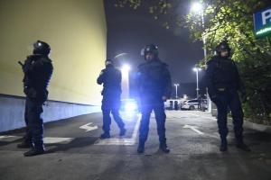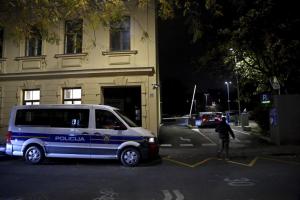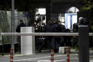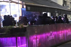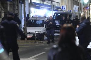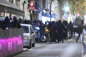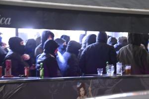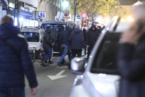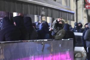 Zagreb, 07.11.2025 - Skupina maskiranih mladica skandira kod Srpskog kulturnog centra