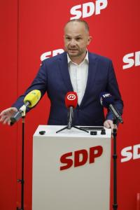 Zagreb. 08.11.2025 - Konferencija za medije predsjednika SDP-a Sinise Hajdasa Doncica