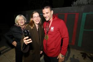 Zadar, 10.11.2025 - Docek jiu-jitsu borca Luke Vuksana koji je osvojio zlato na Svjetskom...