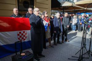 Zagreb, 15.11.2025 - Prosvjed Autohtone - Hrvatske stranke prava ispred Srpskog narodnog vijeca