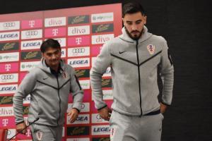 Podgorica, 16.11.2025 - Zlatko Dalic i Josip Sutalo na konferenciji za medije prije utakmice...