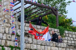 Dubrovnik, 17.11.2025 - Postavljanje zastava na Kapelici povodom Dana sjecanja na zrtve Vukovara...