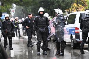 Podgorica, 17.11.2025 - Policijsko osiguranje oko stadiona prije utakmice Crna Gora - Hrvatska