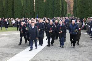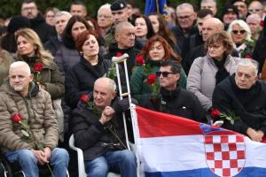 Vukovar, 18.11.2025 - Polaganje vijenaca kod spomen-obiljezja na Memorijalnom groblju zrtava...