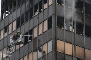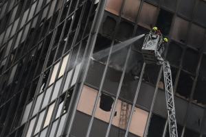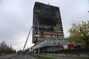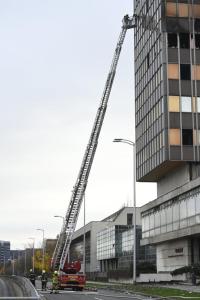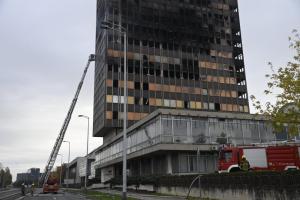 Zagreb, 19.11.2025 - Vatrogasci na zgaristu Vjesnikovog nebodera