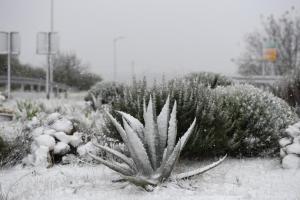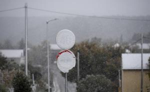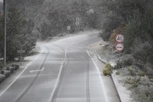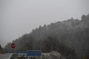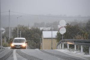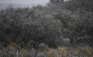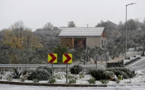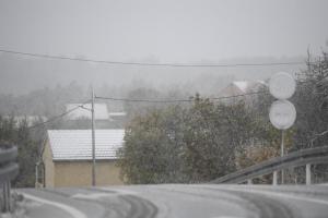 Dubravice, 22.11.2025 - Snijeg nosen jakom burom pada u unutrasnjosti Dalmacije