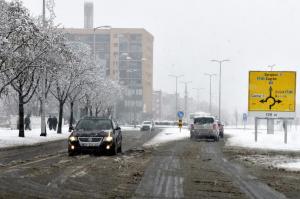 Slavonski Brod, 22.11.2025 - Prvi ovosezonski snijeg u kratkom vremenu zabijelio je ulice grada