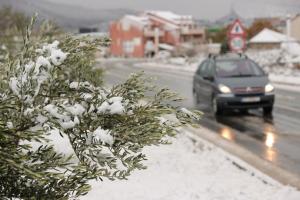 Dugopolje, 22.11.2025 - Prvi ovosezonski snijeg zabijelio je okolicu Splita i Damatinsku Zagoru