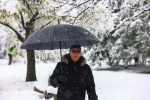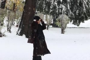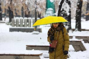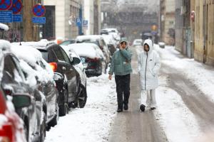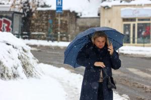 Sarajevo, 22.11.2025 - Setaci na sarajevskim ulicama prekrivenim snijegom