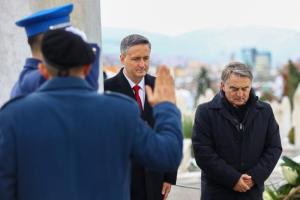 Sarajevo, 25.11.2025 - Povodom Dana drzavnosti BiH Zeljko Komsic i Denis Becirovic polozili...