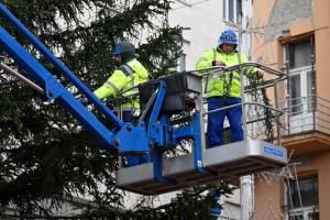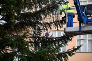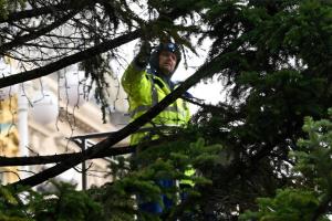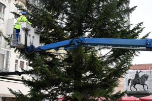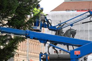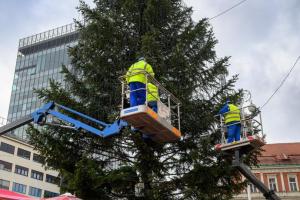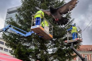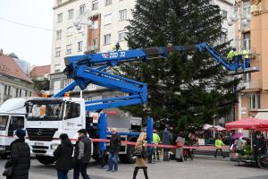 Zagreb, 26.11.2025 - Radnici Zagrebackog holdinga ukrasavaju bor na trgu bana Jelacica povodom...