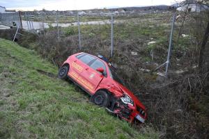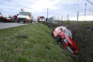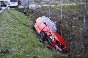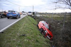 Zagreb, 27.11.2025 - Vatrogasno vozilo zavrsilo u jarku tijekom pozara u skladistu guma u Luzanu