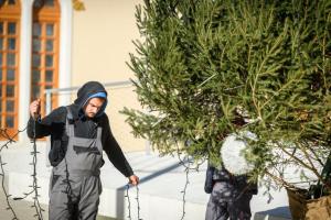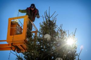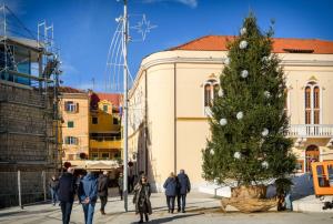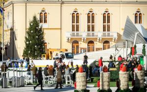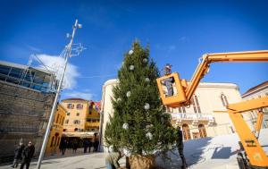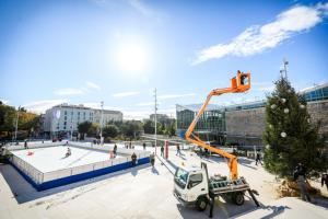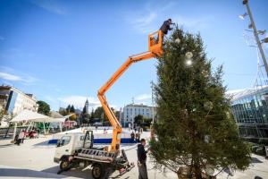 Sibenik, 28.11.2025 - Na Trgu Poljane okicen je bor i postavljeno klizaliste