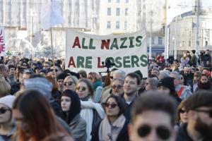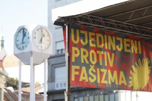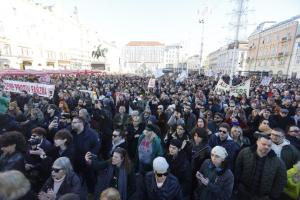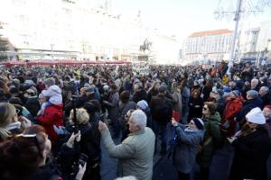 Zagreb, 30.11.2025 - Prosvjedni mars Ujedinjeni protiv fasizma na glavnom gradskom trgu