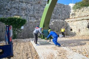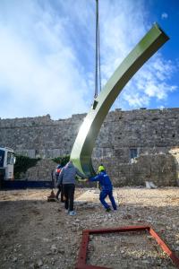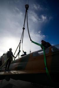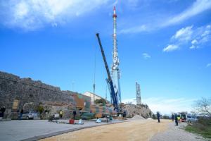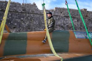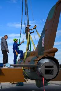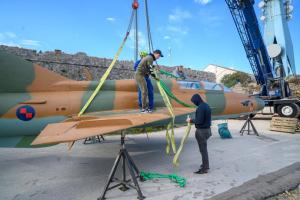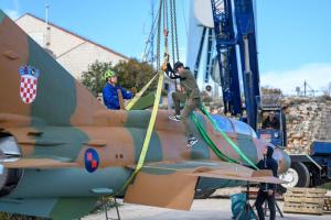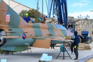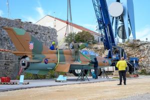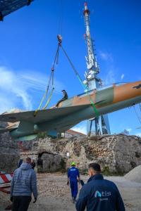 Dubrovnik, 02.12.2025 - Postavljanje borbenog zrakoplova MIG na postolje na Srdju
