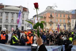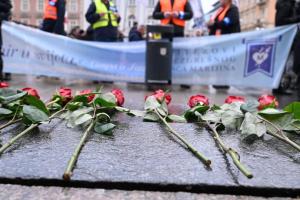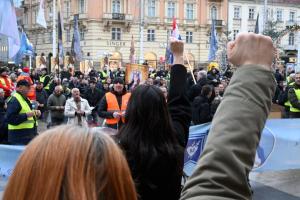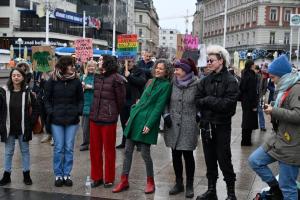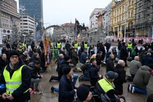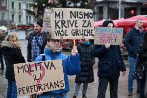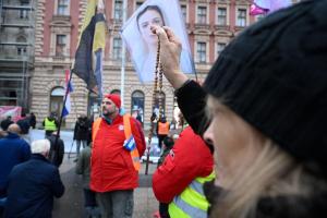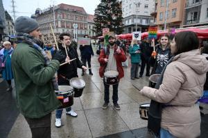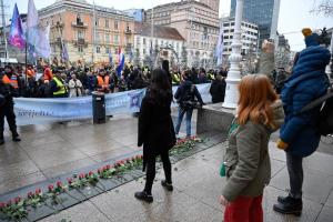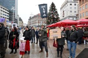 Zagreb, 06.12.2025 - Molitelji i performans Tiha misa na Trgu bana Jelacica