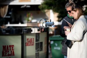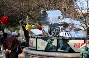 Sibenik, 10.12.2025 - Otkriven ovogodisnji vremenoplov, sredisnja skluptura, Vlak u snijegu