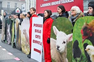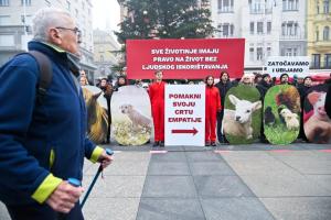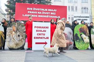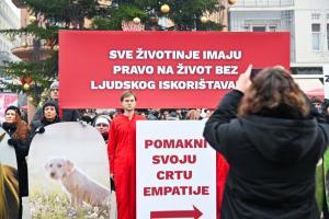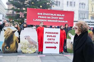 Zagreb, 13.12.2025 - Udruga Prijatelji zivotinja odrzala je performans povodom Medjunarodnog...