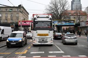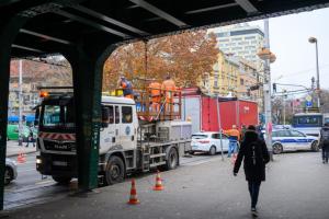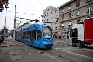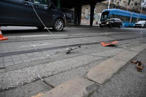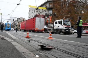 Zagreb, 15.12.2025 - Zastoj tramvajskog prometa u Savskoj zbog kamiona koji je potrgao tramvajske...