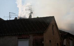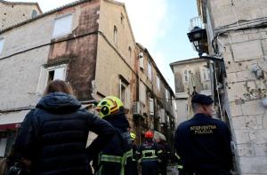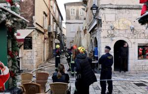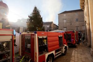 Trogir, 20.12.2025 - Vatrogasci gase pozar koji je zahvatio cijeli blok kuca u staroj jezgri...