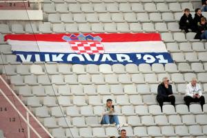 Split, 21.12.2025 - Nogomet: Navijaci na utakmici Hajduk - Vukovar 1991