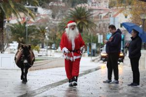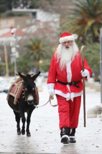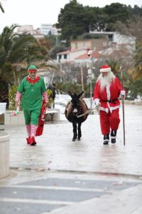 Baska Voda, 23.12.2025 - Djed Bozicnjak s magarcem na baskoj rivi