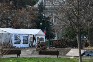 Beograd, 28.12.2025 - Veceras ce biti uklonjeno satorsko naselje ispred Skupstine Srbije