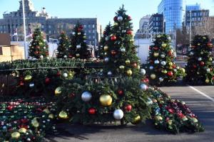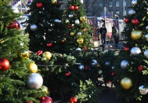 Beograd, 29.12.2025 - Novogodisnji ukrasi postavljaju se ispred Narodne skupstine nakon sto...