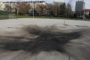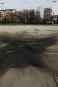 Zagreb, 30.12.2025 - Na skolskom igralistu OS Julija Klovica vidljivi tragovi sinocnje eksplozije