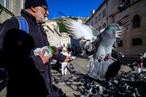 Dubrovnik, 31.12.2025 - I dubrovacki golubovi su dobili svoju poslasticu na staru godinu ispred...