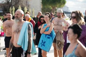 Zadar, 01.01.2026 - Na Morskim oguljama organizirano deseto tradicionalno kupanje za Novu godinu