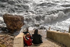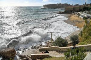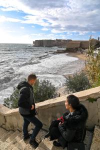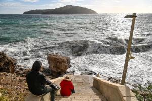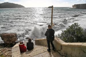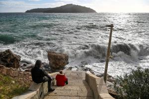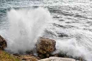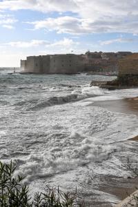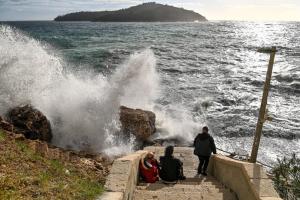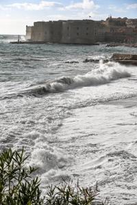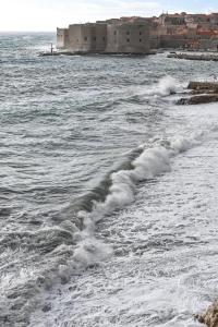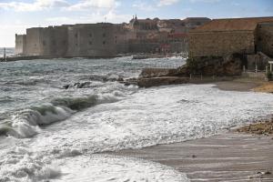 Dubrovnik, 02.01.2026 - Snazno jugo podiglo velike valove na plazi Banje i pod zidinama