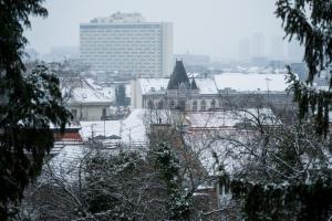 Zagreb, 05.01.2026 - Pogled s Gornjeg grada na krovove prekrivene snijegom